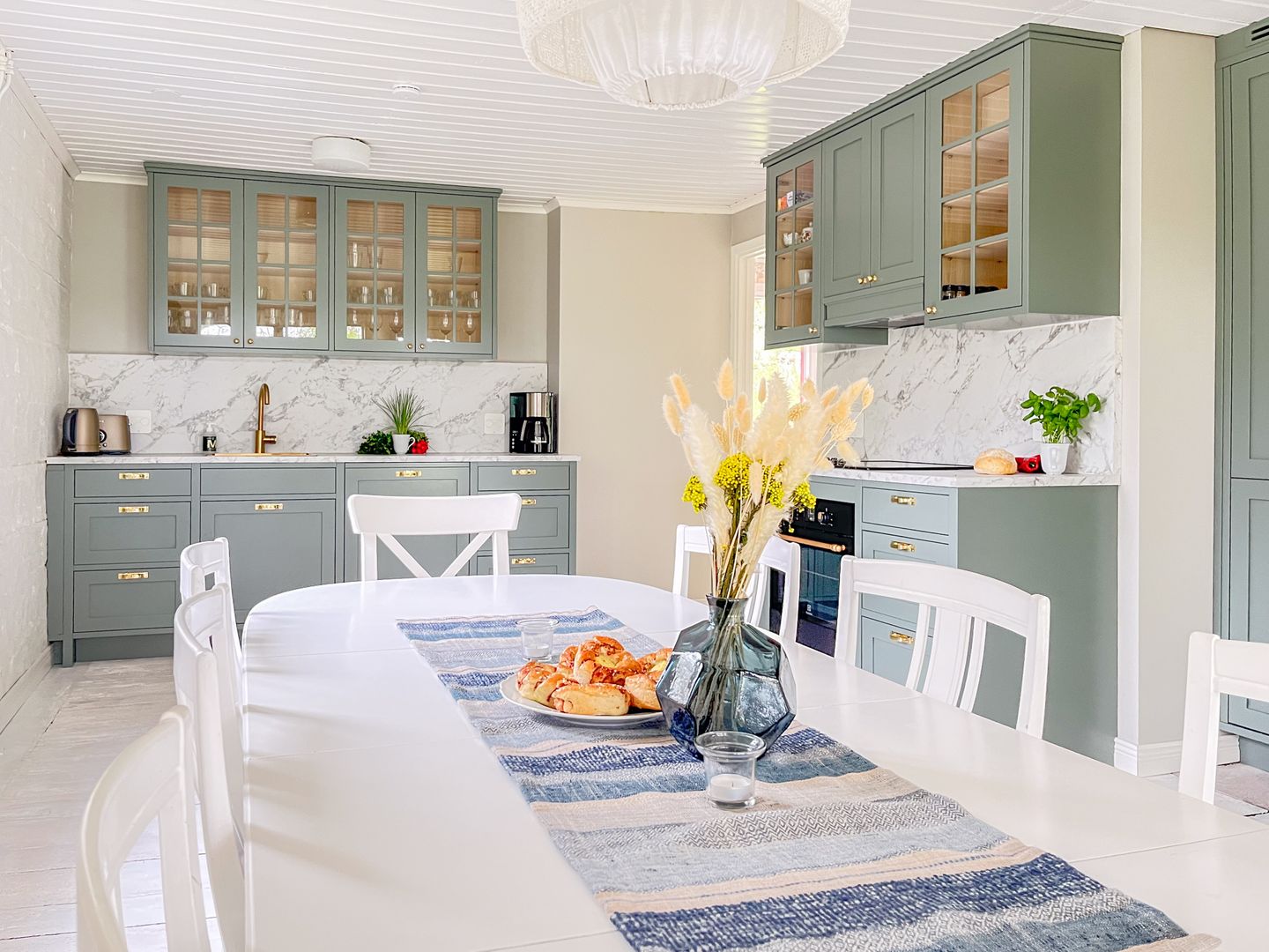 Im Erdgeschoss des historischen Haupthauses gibt es eine Küche mit Geschirrspüler und großem Esstisch an dem bis zu 10 Personen Platz finden - seit 2020 mit tollen Seeblick durch die neuen großen Fenster. Auch das Bad mit Dusche im Erdgeschoss des Haupthauses haben wir 2020 liebevoll im ländlichen still renoviert. Des weiteren finden sich hier 1 Schlafzimmer mit großem Doppelbett und Seeblick sowie 1 Wohnzimmer mit TV. Im oberen Stockwerk gibt es eine zusätzliche Toilette, ein Balkon mit Seeblick, 1 Schlafzimmer mit Einzelbett, sowie ein weiteres Schlafzimmer mit großem Doppelbett. Das Haupthaus verfügt über eine Zentralheizung mit Wasserheizkörpern und die Scheune über Fußbodenheizung in allen Räumen, so können Sie hier ganzjährig, d.h. auch im tiefsten Winter gut Urlaub machen ohne frieren zu müssen.